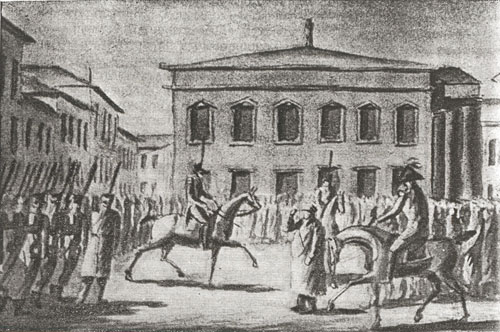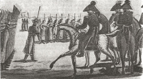 [41] Казнён был корнет Нежинского драгунского полка Городецкий, поляк по национальности, умышленно отставший от своего полка во время отступления русских войск.