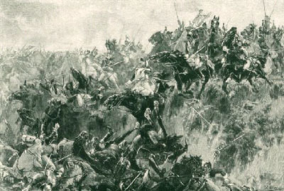 Они ждали своего часа в сентябрьский полдень три года тому назад, привставая на стременах и нетерпеливо вглядываясь в лицо невозмутимого человека, который должен был снять перчатку и привычным жестом бросить их на штурм большого московского редута. Они почти начали решительное движение под Лейпцигом два года назад, когда перчатка была уже снята, но неожиданная атака австрийцев на правый фланг снова сделала Императора осторожным. И вот их час настал! Сейчас они должны пойти в пекло адово, где уже четыре с половиной часа самые рослые и могучие рыцари Европы, потомки участников крестовых походов, истребляют друг друга. "Их было три тысячи пятьсот человек. Они растянулись по фронту на четверть мили. Это были люди – гиганты на конях—исполинах". "У них были каски без султанов и кованые кирасы, седельные пистолеты в кобурах и кавалерийские сабли". "Ней обнажил шпагу и стал во главе их. Громадные эскадроны тронулись." "Можно подумать, что описываемое зрелище принадлежит иным векам. Нечто подобное этому видению являлось, вероятно, в древних орфических эпопеях, повествовавших о полулюдях—полуконях, об античных гипантропах, этих титанах с человечьими головами и лошадиным туловищем, которые вскачь взбирались на Олимп, страшные, неуязвимые, великолепные, боги и звери одновременно".