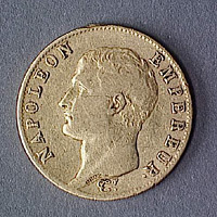 Монеты достоинством 20, 40 и 5 франков. (Монета 20 франков – знаменитый наполеондор).