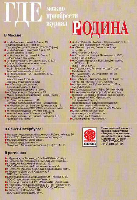 №8/2002Вышел в свет специальный выпуск журнала «Родина», полностью посвященный 190-й годовщине Отечественной войны 1812 г. В номере: