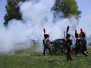Станете зрителями военно-исторического представления «Сквозь дым летучий...». Перед вами оживут события Бородинского сражения. В бой с атакующими французами вступит русская пехота. К ней на помощь устремятся гусары и уланы. Бой завершится схваткой с французскими артиллеристами и захватом неприятельского орудия.