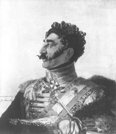 В.Г.Мадатов (1782 – 1829) – в 1812 г. ротмистр Александрийского гусарского полка, находясь в рядах 3-й Обсервационной армии, сражался под Кобрином (награжден орденом Св.Анны 2-й ст. с алмазами), Городечной (за отличие произведен в полковники), участвовал в рейде на территорию герцогства Варшавского, затем находился в делах под Минском, Борисовом, Стаховом, Вильно. В 1813 г. отличился в сражении под Калишем (награжден орденом Св.Георгия 3-го кл.). Участвовал в занятии Дрездена и Лейпцига, в сражениях под Люценом, Бауценом, Лейпцигом (ранен пулей навылет в левую руку, но остался в строю до конца битвы). 28 октября 1814 г. произведен в генерал-майоры со старшинством от 16 сентября 1813 г. Командуя бригадой 2-й гусарской дивизии, в 1815 г. совершил 2-й поход во Францию.