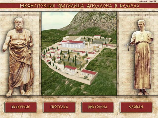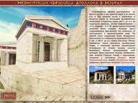 Интерактивная трехмерная модель Святилища Аполлона в Дельфах (далее – модель Святилища) позволяет пользователю просматривать ее на стандартном или сенсорном экране, а также изменять ориентацию и перемещаться внутри ее с получением информации (текст, изображения) о Святилище и его объектах при их выделении посредством мыши, ударной и экранной клавиатуры. Контент - Государственный музей истории религии.