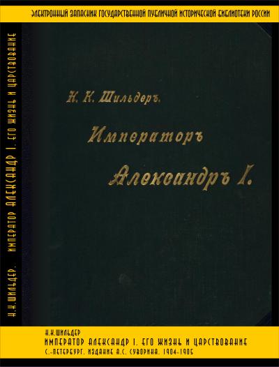 Проект "Электронный запасник" начат в 2002 году совместно Государственной Публичной Исторической библиотекой и ЗАО "КОДИС" с целью обеспечения сохранности редких книг. Фундаментальные труды Николая Карловича Шильдера (1842-1902) - известного русского историка, члена-корреспондента Академии Наук, посвящены жизнеописаниям российских императоров - Павла I, Александра I и Николая I. Это ценнейшее собрание фактического материала, освещающего основные стороны жизни русского общества конца XVIII - первой половины XIX века. Имея доступ в государственные архивы, Н.К. Шильдер впервые опубликовал значительное количество уникальных документов, характеризующих внутреннюю и внешнюю политику императоров, относящихся к военной, политической и дипломатической истории России.