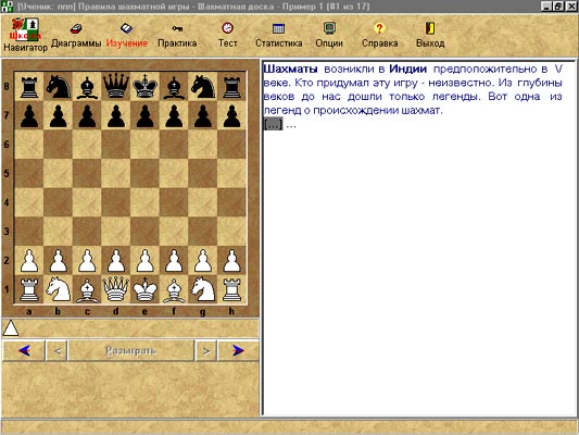 Интерактивная обучающая программа для детей и взрослых, делающих самые первые шаги в шахматах. Шахматный материал подготовлен известным гроссмейстером, заслуженным тренером России Юрием Разуваевым.