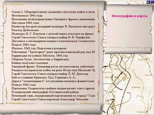 Диск представляет воспоминания и сведения о героях Советского Союза. Представлены военные плакаты. При воспроизведении доступны патриотические песни военных лет.