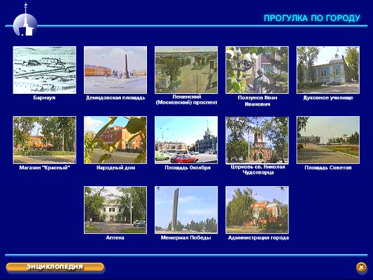 Создание CD-ROM приурочено к юбилейной дате.Диск содержит: Энциклопедию г. Борнаула ( 632 статьи); Прогулка по городу архитектурный облик города, видио, фото и текстовый материалы. Проект осуществлен при финансовой поддержке Института "Открытое общество" (Фонд Сороса) - Россия и технической поддержке Центра Интернет Алтайского госуниверситета.