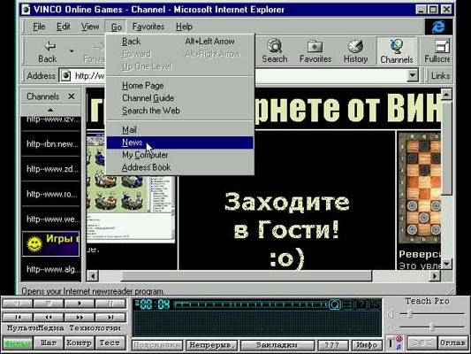 TeachPro Internet научит Вас настраивать компьютер и модем, подключаться к провайдеру, находить и использовать информацию, пользоваться электронной почтой и создавать собственные Web-странички. В курсе подробно рассматриваются работа с программами Internet Explorer 4.0, Outlook Express, Netscape Communicator 4.0 и Pegasus Mail.