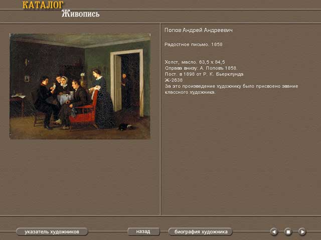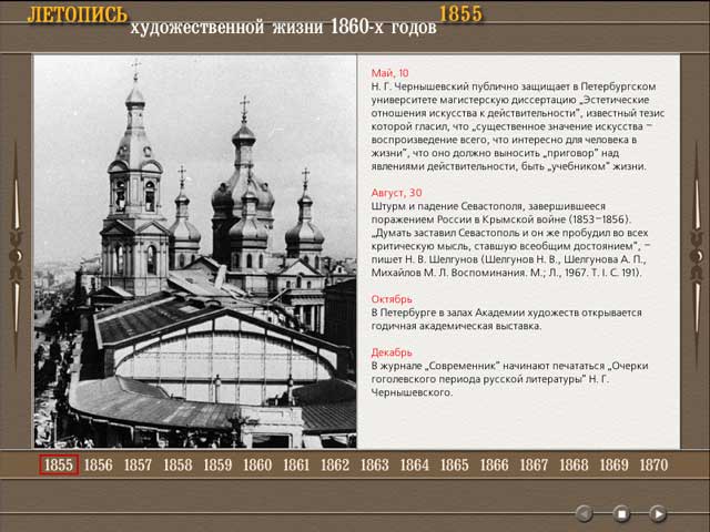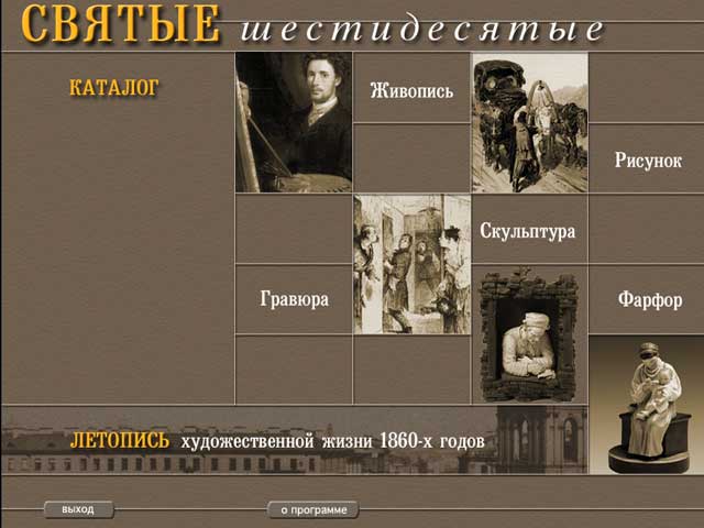 На диске представлено более 300 произведений живописи, графики, скульптуры 1860-х годов из коллекции Русского музея, биографические справки о художниках, а такжне хроника общественной жизни того времени