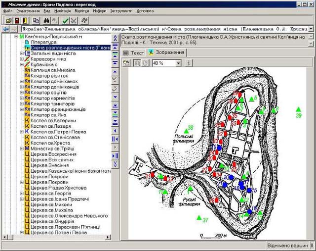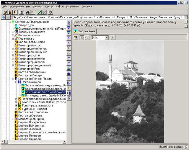 База данных содержит исторические справки и иллюстративный материал, касающийся храмов Подолья - исторической области Украины (ныне это Винницкая, части Хмельницкой, Черкасской и соседних областей). Всего представлено 3127 храмов в 2368 населенных пунктах.