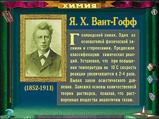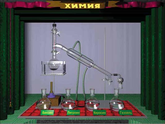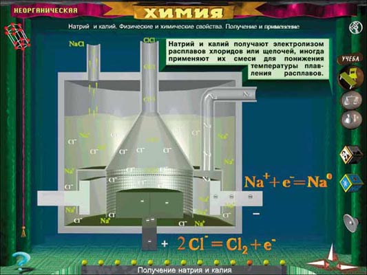 Мультимедиа обучающий курс "Общая и неорганическая химия" предназначен для изучения химии в 11 классе средней школы и может быть использован для подготовки к экзаменам при поступлении в высшие учебные заведения. В CD-ROM “Химия” необычное изложение сложного учебного материала, содержащее большое число иллюстративной графики, формул химических реакций, трехмерной анимации процессов и явлений, дополнено фотографиями и фрагментами цифрового видео. Структура и содержание CD-ROM “Химия” дает возможность использовать его как при самостоятельном обучении школьников дома, так и во время занятий в специально оборудованных мультимедиа классах. Интересное графическое решение, основанное на использовании 3D графики, и оригинальный интерфейс позволит учащимся получить удовольствие от знакомства с курсом в “мультимедиа театре ХИМИИ”. В основной части CD-ROM “Химия” содержится изложение учебного материала, соответствующего школьной программе по “ОБЩЕЙ И НЕОРГАНИЧЕСКОЙ ХИМИИ”. Курс включает следующие разделы: 1. Периодическая система химических элементов Д. И. Менделеева. 2. Химическая связь и строение неорганических веществ. 3. Теория электролитической диссоциации. 4. Окислительно - восстановительные реакции 5. Элементы I, II и III групп. Натрий. Калий. Алюминий. 6. Элементы IV-ой группы. Углерод. Кремний. 7. Элементы V группы. Азот. Фосфор. 8. Элементы VI группы. Кислород. Сера. 9. Элементы VII группы. Водород. Галогены. 10. Элементы побочных подгрупп. Железо. Хром. В режиме “ОПЫТЫ” учащимся представляется возможность просмотреть или принять участие в лабораторных работах по основным разделам курса. В режиме “ТЕСТ” самоконтроль учащихся обеспечивается набором комплексных тестов по базовым разделам курса. Предметный и именной указатели CD-ROM “Химия” могут быть использованы для быстрого поиска необходимого учебного материала. Удобной навигации по учебному материалу помогают наглядные меню двух уровней и система “PREVIEW”.