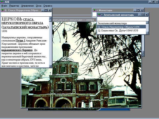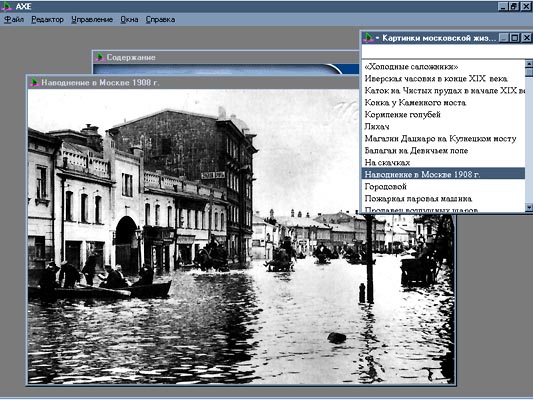 Диск содержит более 1500 текстов и 1100 иллюстраций, рассказывающих о развитии Москвы с древних времен, исторических районах и улицах города, его усадьбах и монастырях, людях, связанных с судьбой столицы, и исторических реалиях разных эпох. Приводятся сведения примерно о 600 сохранившихся и 400 не дошедших до нас сооружениях - храмах, зданиях и документах, театрах и магазинах, вокзалах и мостах. Панорамы виртуальной реальности позволяют очутиться в давно исчезнувших городских пейзажах. Интерактивная схема развития Кремля наглядно показывает развитие древнего городского ядра.