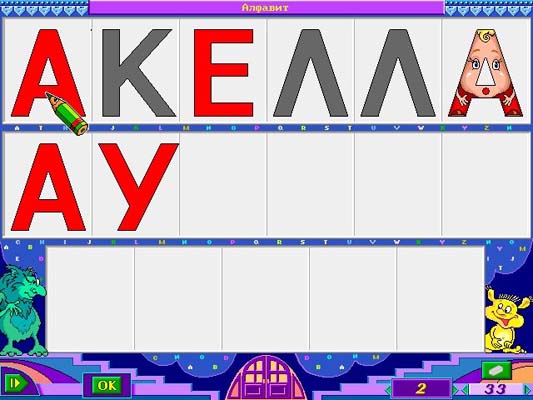 Эта программа предназначена для детей в возрасте от 3-х до 8 лет. В программе использована концепция “чтение через письмо”. Она помогает ребенку научиться читать и писать. Основная идея этой программы – сделать чтение и письмо увлекательной игрой с “живыми”, “говорящими” буквами. Ребенок оказывается в сказке, где компьютерные тролли дают ему пояснения и задания, за правильно написанное слово показывают красочные картинки с этим словом и предлагают разные игры. Программа имеет два режима – режим обучения и свободный режим. В режиме обучения ребенку предлагается выполнить те или иные задания различных уровней сложности. Самый простой уровень – знакомство с алфавитом. На более высоких уровнях предлагаются слова со все более сложным правописанием. Задания, которые предстоит выполнять ребенку, таковы: найди букву на экране; вставь пропущенную букву в слово; напечатай букву или слово и т.д. Если задание выполнено, то ребенку прочитают слово, и покажут красочную фотографию или картинку, на которой есть это слово. В свободном режиме ребенок может писать любые буквы и слова, какие ему захочется.