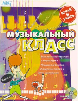 "Музыкальный класс" будет интересен как детям любого возраста, так и взрослым. Это веселое развлечение, игра и уроки музыки одновременно. Программа позволяет найти подробные описания различных типов музыкальных инструментов (старинных, классических, современных), а также услышать их звучание. Вместе с тем вы сможете почерпнуть много интересных и необходимых сведений по теории музыки. Например, узнать о том, что такое гармония, интервал, мелодия, нота, тон и др. Получить представление о различных музыкальных стилях и жанрах (джаз, самба, полька, вальс, рок, популярная музыка, техно, рэп) можно прослушивая музыкальные фрагменты с помощью киберсинтезатора. Если появится желание попробовать себя в качестве певца, то его легко осуществить. Выбрав песню из предлагаемого перечня, можно исполнить ее под фонограмму, записать на компьютер с помощью микрофона, а затем прослушать результат. Кроме того, диск содержит игры различной сложности для детей разных возрастов: "Музыкальный диктант", "15" и "Собери мелодию". С их помощью можно выучить нотную грамоту и развить свой музыкальный слух.