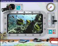 Мультимедиа географический путеводитель. Откройте для себя красоты и тайны подводного мира. Безбрежные просторы Мирового океана всегда манили к себе человека, а подводный мир, со своими неисчислимыми богатствами, притягивал как магнит и отчаянных авантюристов, и расчетливых ученых. У Вас есть уникальная возможность, что называется "не замочив ног", побывать в 32 сказочных местах Мирового Океана, погрузиться в нашем "3D батискафе" на морское дно и почувствовать себя отважным исследователем сложной жизни подводных обитателей. Элементарный щелчок мышки мгновенно перенесет Вас из одного места Мирового океана в другое. И везде за стеклом иллюминатора, перед Вами раскроется очаровательный подводный мир, запечатленный 20 минутами "живого" видео и более чем в 300 полноэкранных слайдах. Обширная справочная информация и оригинальный интерфейс продукта удовлетворят самого требовательного пользователя.