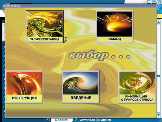 Когда возникают сложные проблемы во взаимоотношениях с людьми или проявляются повышенная нервозность и неконтролируемые эмоции, лучше всего посоветоваться с психологом. Однако часто не хватает времени, а порой и желания раскрывать душу перед чужим человеком. Поэтому проблемы остаются нерешенными и продолжают портить нам жизнь. Воспользовавшись визуальным психологическим тестом состояния, Вы получите объективную информацию о Вашем эмоциональном и физическом состоянии, динамических характеристиках механизмов психической защиты, показателях уровня внутренней напряжённости и активности. Результаты и рекомендации выводятся на экран дисплея в текстовом варианте и в виде визуального образа, позволяющего взаимодействовать с бессознательными элементами Вашей психики. Программа поможет Вам лучше определить своё реальное состояние, снизить психическое напряжение и найти пути решения внутриличностных конфликтов.