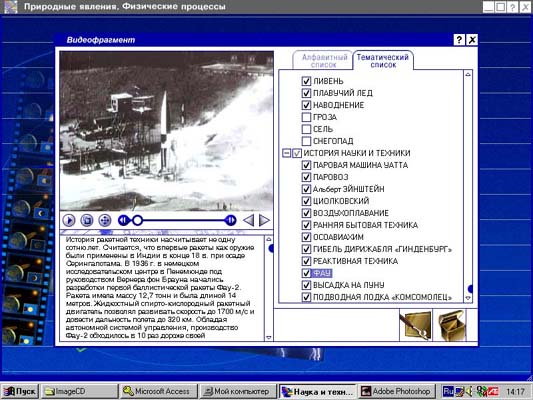 Диск 3 "Наука и техника. Физические процессы" включает: 45 видеофрагментов из истории науки и техники, кадры уникальных природных явлений, 46 анимационных моделей, иллюстрирующих физические процессы и принципы действия технических устройств.