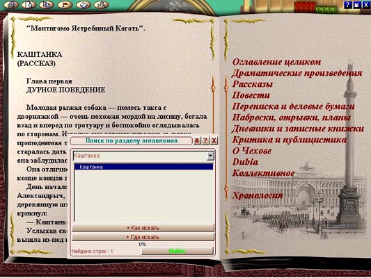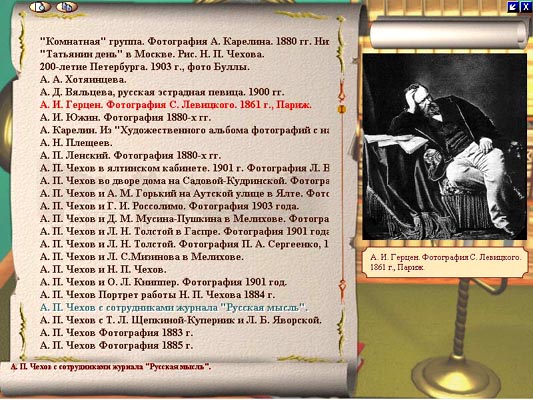 Все художественные произведения. Переписка и деловые бумаги. Критика и публицистика. Наброски, отрывки, планы. Тезаурус. Произведения 40 авторов о А.П. Чехове и его произведениях. Воспоминания современников о А.П. Чехове. В галерее более 500 видиоизображений, в том числе: Портреты А.П. Чехова. Иллюстрации к произведениям. Россия времен А.П. Чехова. Рисунки А.П. Чехова Семья, знакомые, документы