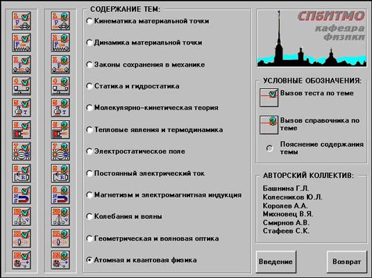 Физика в тестах, решениях и демонстрациях для школьников и абитуриентов предназначена в помощь школьникам и поступающим в вузы для обучения по следующим разделам физики: основы кинематики; основы динамики ; законы сохранения в механике; статика и гидростатика; молекулярно-кинетическая теория; основы термодинамики; электростатика; законы постоянного тока; магнетизм и электромагнитная индукция; колебания и волны; геометрическая и волновая оптика; атомная и квантовая физика. Программы могут быть использованы как для индивидуальной подготовки, так и для проведения групповых занятий в компьютерных классах гимназий, школ, лицеев, а также для вступительных экзаменов в вузах. CD-ROM рекомендован к использованию Министерством образования РФ.