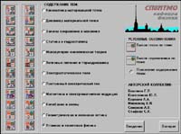 Технические требования: Оптимальная конфигурация компьютера: процессор Pentium-120 мГц и выше; RAM-16 мБ; видеокарта SVGA с памятью 512 кБ - 1 мБ на 256 цветов с разрешением 640x480 с шиной PCI; При использовании видеокарт с шиной ISA (например, UMC, Cirrus Logic, Trident) в программах тестов будет возникать "обрезание" экрана, что ведет к дефектам в их работе. Рекомендуется использование видеокарт S3 "Trio+" (64), Diamond Stealh, ATI Grafics Pro и им подобных c шиной PCI; Windows-совместимая звуковая карта; 4-х скоростной дисковод CD-ROM. Следует иметь в виду, что из-за многообразия модификаций рекомендуемых видеокарт возможны отклонения от нормальной работы программ по размерам выводимого окна. Например, для модификации видеокарты Diamond Stealth возможен вывод видеодемонстраций на весь экран. В этом случае, как и в ряде других, необходимо аккуратно манипулировать окнами и клавишами (см. Предупреждение), иначе возможно "наслоение" незакрытых рабочих окон, что может привести к сбоям в изображении.