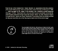 песни, записанные Ю. Энгелем – одним из признанных лидеров еврейского музыкального возрождения России начала XX века. Записи сделаны на восковых цилиндрах при помощи фонографа Эдисона во время проведения первой еврейской этнографической экспедиции под руководством С.Ан-ского в местечках Киевской губернии (Ружин, Сквира, Паволочь) в 1912 году. Фонографические цилиндры с записями всей «Исторической коллекции еврейской музыки 1912-1947гг» (в том числе и «Материалы этнографической экспедиции Ю.Энгеля 1912 г.») хранятся в Национальной библиотеке Украины им. В.И.Вернадского. Высококачественное воспроизведение звука с фонографических цилиндров и запись на современные носители информации осуществлены на оборудовании и по технологии, разработанным в Институте проблем регистрации информации НАН Украины.Разработка метода и оборудования для воспроизведения звука с фонографических цилиндров Эдисона, перезапись фонограмм на современные носители информации, Институт проблем регистрации