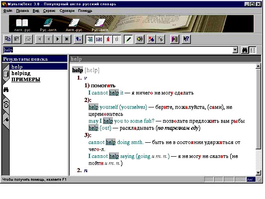 Англо-русский, русско-английский электронный словарь. Словарь основан на словаре общей лексики О. С. Ахмановой и включает более 40 тыс. словарных статей. В нем специально подобраны слова и выражения, которые чаще всего встречаются в разговорной и письменной речи. Все слова и выражения в словаре озвучиваются с помощью программы синтезированной речи прекрасного качества, которая также позволяет озвучивать любые выбранные словосочетания и фразы. Пользователь сам может выбрать мужской или женский голос, который будет произносить английские слова. Кроме того, Популярный МультиЛекс имеет возможность добавления специальных словарей, которые будут выпущены к концу 1998 г. Как и предыдущие версии, Популярный МультиЛекс имеет мощные и разнообразные системы поиска, удобные средства для самостоятельной работы, словарь пользователя, содержит точную и полную словарную информацию и имеет интеграцию с Microsoft Word. Популярный МультиЛекс сочетает в себе высокое качество и доступную цену. Идеально подходит студентам, школьникам и всем, кто изучает английский язык.