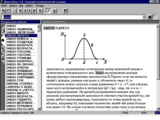 Словарь создан при участии Института новой экономики и содержит электронную версию второго издания Большого экономического словаря под редакцией А.Н.Азрилияна (Институт новой экономики, 1997 год). Экономический словарь содержит 19 тыс. терминов и толкований, многие статьи дополнены различными пояснениями, комментариями. Затрагиваются все направления экономики; большое внимание уделено понятиям бухгалтерского учета, финансов, банковского дела, страхования, биржевого дела, теории управления и менеджмента, труда и заработной платы, маркетинга, снабжения, торговли, транспорта, экономики природопользования, статистики, гражданского, административного, уголовного и трудового права, экономико-математических методов и пр. Отдельные статьи посвящены персоналиям, научным школам. Помимо того, представлен специфический экономический жаргон. В словарь включены как термины, связанные с мировой экономикой, мировыми рынками, так и с национальными экономиками и правами ряда развитых стран мира. Некоторые статьи проиллюстрированы графиками и схемами, более наглядно объясняющими те или другие понятия. Теперь это уникальное и чрезвычайно практичное издание доступно в электронной форме. Большой экономический словарь легко вписался в простой и эффективный интерфейс МультиЛекса.