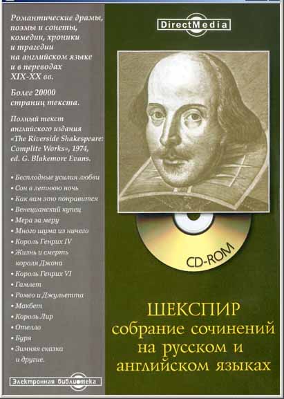 Романтические драмы, поэмы и сонеты, комедии, хроники и трагедии на английском языке и в переводах XIX-XX вв. Более 20 000 страниц текста. Полный текст английского издания «The Riverside Shakespeare: Complete Works», 1974, ed. G. Blakemore Evant. Бесплодные усилия любви. Сон в летнюю ночь. Как Вам это понравится. Венецианский купец. Мера за меру. Много шума из ничего. Король Генрих IV. Жизнь и смерть короля Джона. Король Генрих VI. Гамлет. Ромео и Джульетта. Макбет. Король Лир. Отелло. Буря. Зимняя сказка и другие
