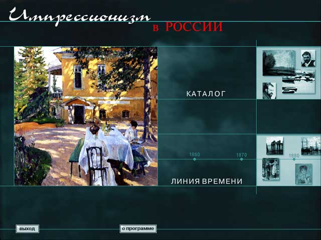 Диск посвящен первой в России выставке русского импрессионизма. Содержит 300 произведений из коллекции Русского музея. Представлены произведения Серова, Коровина, Левитана, Репина, Грабаря, Ларионова и др.