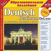 «1С:Образовательная коллекция. Deutsch Platinum DeLuxe». Новая версия легендарного самоучителя «Deutsch Platinum». Новые возможности программы позволяют повысить эффективность обучения иностранному языку. Программа позволяет изучить грамматику и фонетику немецкого языка, корректировать произношение с помощью компьютера, контролировать успешность процесса обучения и выучить в кратчайшие сроки 10000 слов.