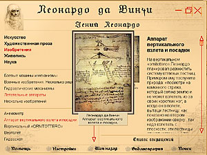 Новая мультимедиа-энциклопедия, посвященной жизни и творчеству величайшего гения человечества – Леонардо да Винчи – «Гений неподвластный времени. Леонардо да Винчи». Живописец, скульптор, архитектор, ученый, инженер, Леонардо да Винчи, использовал свой интеллект, чтобы заглянуть в будущее и помочь сотворить мир, в котором мы живем. Его многочисленные открытия, проекты, экспериментальные исследования в области математики, естественных наук, механики были поистине удивительными и на многие века опередили время своего претворения в жизнь. «Я хочу сделать чудо!», – говорил молодой Леонардо. Его творения стали Чудом, поражающим сознание людей и по сей день.