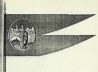 - знамя из белой шёлковой материи, обложенное по краям серебряным позументом, с изображением в середине на одной стороне св. Георгия Победоносца, поражающего копьём змея, а на другой св. Апостолов Петра и Павла (рис. 1);