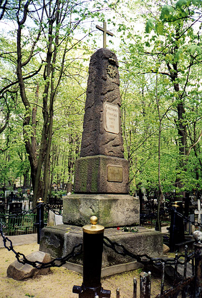Vvedenskoye cemetery had been founded in 1771. First Lutherans and Catholics were been buried there and that's why the cemetery was named Nemetskoe (German). In XIX century the remains of Peter I fellow-fighters generals Franz Lefort and Patrik Gordon were reburied there. The hero of the foreign campaign of Russian army of 1813-1814 the commander of Astrakhan cuirassier regiment the general-major (from 07.02.1814) Karl Gustavovich Stal, the publisher I.D.Sytin (famous for his publications dedicated to war of 1812), the paintists Appolinariy and Victor Vasnetsovs and other famous Russians were also buried there.