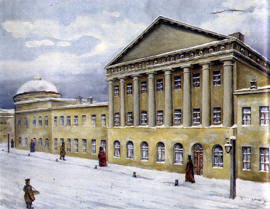 Тем временем московские ученые собирались в дорогу. Укладывались ящики с наиболее ценными музейными экспонатами и приборами, но их судьба оставалась неясна, потому что никаких конкретных распоряжений о лошадях и подводах пока не поступало. Профессора Л.А.Цветаев и А.В.Болдырев воспользовались возможностью отправиться в Казань вместе с другими учебными учреждениями, где они преподавали. М.Т.Каченовский и В.М.Котельницкий уехали вдвоем в Тамбов. А профессор физики П.И.Страхов не торопился с отъездом. Он выбрал и упаковал самые нужные машины и инструменты из физического кабинета, однако его мучила болезнь, и он склонялся к тому, чтобы остаться в своей квартире, а не странствовать в полной неизвестности без денег и пристанища. Похожие настроения были у ректора Гейма, его также томили недобрые предчувствия. День ото дня жизнь в Москве становилась все тревожнее. Перед нами университетский благородный пансион: его воспитанники еще недавно резвились в рощах возле Петровского дворца и воображали, как будут сражаться со злодеями–французами, если те придут в их лагерь. С 15 августа у них должны начаться занятия, но никто из их товарищей в Москву не возвращался, а наоборот, уезжали те, кто жил в городе. «Классы не начинались; все у нас мало–по–малу редело; мы ничем не занимались; никто почти за нами не смотрел. Странное было наше положение: мы были оставлены почти на собственный произвол. Пользуясь этим, мы часто расхаживали по городу. Народ волновался; беспрерывно доходили до нас слухи о народных неистовствах. Прогулка по улицам становилась небезопасною... Преследовали иностранцев; доставалось и русским, если подслушивали, что они говорят на иностранном языке. Один из наших надзирателей, из русских, также был остановлен на улице, но отделался одним страхом.»[51] Наконец, в пансионе осталось всего семь воспитанников, остальных разобрали родные и отвезли по семьям. Инспектор А.А.Прокопович–Антонский решил отправить детей в Петербург, но вдруг отменил решение, узнав по слухам, что дорога туда небезопасна и на город также наступают французы. «Вещи, уложенные в повозку, опять были снесены на прежнее место, лошадей отпустили, и стали мы дожидаться своей участи. Я предвидел что–то неприятное, но не мог сообразить, что могло бы с нами случиться»[52]. Между тем, Антонский простился с ребятами и уехал в деревню. Пансион опустел, в нем не осталось ни одного надзирателя. Радовавшиеся свободе дети бегали по городу и удивлялись наступавшей там пустоте. Перелом в настроении остававшихся еще жителей, при котором их страх и неуверенность перешли в массовое бегство, наступил в те часы, когда в Москву пришли первые известия о Бородинской битве. Краткая радость о одержанной по слухам победе наших войск быстро сменилось осознанием того, что армия продолжает отступать и Москву удержать нельзя. Почти одновременно с этим в город въезжали подводы с тысячами раненых. На окраинах города была слышна пушечная канонада. Тем не менее, тон «афишек» Ростопчина оставался прежним, будто бы он и мысли не допускал об оставлении города. «Сила наша многочисленна и готова положить живот, защищая отечество, не пустить злодея в Москву, – пишет он 30 августа, призывая всех собраться на Трех Горах. – Я буду с вами, и вместе истребим злодея.»[53] В результате на это место постепенно стек