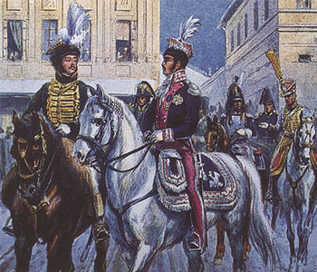 НАТАЛЬЯ ГУТИНА. «СОЛДАТАМ ВЕЛИКОЙ АРМИИ». ![]() * * * 1809 Император с триумфом въезжал в Париж, Пирамиды, Маренго, Илава... И французское войско к победам вела Неизменная громкая слава. Император смотрел на Великую Рать: Егеря, гренадеры, уланы, - И, как прежде, труба уставала играть: "Aux armes! Трепещите, тираны!" Воскрешая доблесть былых времен, Ветераны Лоди и Йены Проходили мерно под шелест знамен Побежденной, покорной Вены. Шли победно, гулко печатая шаг, Кавалеры "Legion d'Honneur". У колонны, где взвился трехцветный стяг, Раздавалося: "Vive l'Empereur!" "Vive l'Empereur!" - кричал французский народ. "Vive l'Empereur!" - гремели литавры. Но вставал вдали кровавый поход И сокрытые снегом лавры. Гарцевал на белом коне Жюно, Губернатор земель Иллирийских. И, смахнув слезу, вспоминал Удино О погибших от пуль австрийских. Улыбался дамам красивый Дюрок, И шутил Мюрат с Понятовским, И не знал никто, что жестокий Рок Их сразит пожаром московским. Уж Звезда покидала привычный зенит, Угасая в лучах былого, И ломала Судьба величавый гранит, Предрешая ход Ватерлоо. Уж виднелась вдали чужая страна, Где враждебны леса и воды. Ожидала героев Березина, Не признав мятежной Свободы. Уж безумный Мале в Шарантоне мечтал О какой-то несбыточной воле, И в тяжелом тумане бог брани искал Бородинское мертвое поле.