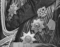 Военный костюм и форменное гражданское платье позволяют лишь приблизительно определить эпоху, а вот орденские знаки чаще других деталей помогают атрибутировать лицо, изображенное на портрете. Например, по погонам или эполетам мы способны определить эпоху, но не можем сказать, какое положение занимал изображенный в обществе того времени. Если же на портрете имеются орденские знаки: кресты, ленты, звезды, то достаточно точно можно судить о том, к какому классу табели о рангах принадлежит человек, каков его чин. Орденские знаки – видимая атрибутика чинов и званий, своеобразный паспорт, по которому эксперт может прочесть многое. Далее вход идут архивные изыскания, и при удаче выясняется имя на портрете.