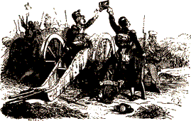 ![]() Уже неприятель стал делать ошибки, предзнаменовавшие его поражение: он начал слишком растягивать свои фланги. Присутствие первого консула поддерживало мужество войск. ![]() „Дети! — говорил он им. — Помните, что я имею привычку ночевать на поле битвы". При криках: „Да здравствует первый консул!" Дезе живо повел атаку с центра. Ряды имперцев в одну минуту расстроены. Генерал Келлерман, который в течение целого дня прикрывал своей тяжелой кавалерией отступление нашего правого крыла, кинулся в атаку с такой быстротой и так кстати, что были взяты в плен шесть тысяч австрийских гренадеров, начальник их главного штаба, генерал Цах, и убито множество других генералов. Вся армия последовала за этим движением. Правое крыло неприятелей отрезано. Ужас и смятение овладело его рядами. Австрийская кавалерия устремилась было к центру для прикрытия отступления; но бригадный командир Бесьер, взяв полк головорезов (les casse-cols) и гвардейских гренадеров, ударил на нее, рассеял и тем довершил полное расстройство неприятельской армии. Мы взяли пятнадцать знамен, сорок орудий и от шести до восьми тысяч пленными; на поле легло более шести тысяч имперцев. Девятый легкий пехотный полк заслужил быть названным несравненным. Тяжелая кавалерия и восьмой драгунский полк покрыли себя славой. Потери и с нашей стороны значительны; у нас убито шестьсот человек, ранено полторы тысячи и взято пленными девятьсот. ![]() Генералы Шампо, Мармон и Буде ранены. У генерала-аншефа Бертье весь мундир пробит пулями; многие из его адъютантов убиты или ранены. Но армия и все отечество понесли еще чувствительнейшую утрату. Дезе убит в самом начале атаки, произведенной его дивизией; умирая, Дезе успел только сказать бывшему при нем молодому Лебрену: "Скажите первому консулу, что я, умирая, жалею только о том, что не имел времени заслужить долгой памяти потомства"». В течение своего военного поприща Дезе был три раза ранен, и под ним убито четыре лошади. Он прибыл в главную квартиру только за три дня до маренгской битвы, горел желанием быть в деле и накануне раза два-три говорил своим адъютантам: «Вот уже прошло много времени с тех пор, как я не дрался в Европе; ядра забыли меня; ну, быть чему-то». Когда, в самом пылу битвы, донесли Бонапарту, что Дезе убит, у него вырвались только эти слова: «О, для чего не позволено мне плакать!» Тело Дезе было на почтовых отправлено в Милан и там набальзамировано. ![]() Два дня спустя Бонапарт писал консулам из главной квартиры в Торре ди Гарафола: «Граждане консулы; на другой день после сражения при Маренго генерал Мелас прислал на наши аванпосты просить позволения прислать ко мне генерала Скала. В продолжение дня заключена конвенция, с которой прилагаю копию. Она подписана в ночи генералом Бертье и генералом Меласом. Надеюсь, что французский народ будет доволен своей армией». ![]() Битва при Маренго отдала в руки победителей Пьемонт и Ломбардию. Первый консул недолго пробыл в Италии. В Милане народ и даже духовенство приняли его с восторгом. Бонапарт, желая приобрести опору в духовных особах, сказал им следующую речь: «Служители церкви, которой я сын, я считаю вас лучшими моими друзьями; я объявляю вам, что сочту за возмутителя общественного спокойствия и велю жестоко наказать и, если будет нужно, то предам смерти всякого, кто осмелится нанести оскорбление 