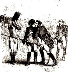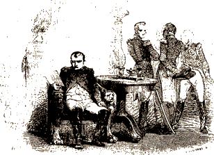 Столица Франции занята союзниками. Никто уже не думал о Наполеоне; только император австрийский заботился о Марии-Луизе и римском короле. Император Александр показал все свое великодушие: желая только счастья французам и спокойствия Европы, он объявляет, что Бурбонам должен принадлежать трон французский. 2 апреля (21 марта) сенат объявил, что Наполеон и его семейство лишены престола, а вслед за тем другим актом своим призвал старшего из Бурбонов на трон. Пока Талейран, в качестве президента временного правительства, управлял делами, Наполеон находился в Фонтенбло. Он был окружен верной гвардией, которая кипела желанием отомстить за капитуляцию Парижа; но штаб его думал иначе. В ночь со 2 на 3 апреля (с 21 на 22 марта) Коленкур прибыл с известием, что союзные монархи не вступают с Наполеоном в переговоры и желают его отречения. Такое известие сначала изумляет его; он хочет снова приняться за оружие; но все вокруг него тихо, печально, упало духом. Нет уже прежних героев: это царедворцы павшей империи! Наполеон, наученный горьким опытом, решается написать своей рукой следующие строки: «Союзные монархи объявили, что император Наполеон есть единственное препятствие к водворению мира в Европе; император Наполеон, верный своей присяге, объявляет, что готов сойти с трона, расстаться с Францией и даже с жизнью, для блага отечества, неразлучного с правами его сына, с правами императрицы-регентши и с сохранением законов империи. Во дворце в Фонтенбло, 4 апреля 1814. Наполеон» Коленкуру поручили отвезти этот акт в Париж; с ним послали Нея и Макдональда. Оба маршала с герцогом Виценским, отправились в Париж, а Наполеон между тем узнал, что Мармон предал его и перешел на сторону победителей. Наполеон издал к своим войскам приказ, в котором строго порицал поведение Мармона, равно как и поступки сената. Посланники Наполеона не имели успеха. Союзные монархи не желали препятствовать восстановлению Бурбонов, и Коленкур возвратился к Наполеону с требованием нового отречения, которым уничтожались бы претензии римского короля и всех членов наполеоновской фамилии на трон французский. Такое предложение пробудило в Наполеоне сильную решимость продолжать войну. Он начал рассчитывать, какие средства остаются у него на севере, на юге, на Альпах и в Испании; но его расчеты, надежды, решения не возбуждают ни в ком сочувствия; все вокруг него молчат и, видимо, не одобряют его намерений. Ему даже говорят о междоусобной войне во Франции. «Если уже нельзя защищать Францию, Италия даст мне убежище, достойное меня! Хотите ли за мною следовать?.. Пойдем за Альпы!» ![]() При этих словах лица его сподвижников становятся еще мрачнее. Он понимает, что нет у него такого штаба, какой был при Лоди и Арколе; берет перо и отдает Коленкуру акт следующего содержания: «Союзные монархи объявили, что император Наполеон есть единственное препятствие к водворению мира в Европе; император, верный своей присяге, объявляет, что отказывается за себя и детей своих от тронов Франции и Италии, и что готов жертвовать всем, даже жизнью, для блага Франции. Наполеон». Что же будет теперь с повелителем Франции, когда он побежден и лишен престола? Какую участь назначить человеку, который стоял так высоко, рука которого может еще потрясти мир? Куда сослать его? Союзные монархи выбирают между Корфу, Корсикой и Э