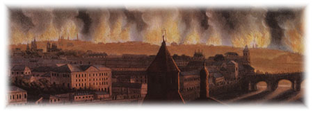 ГЛАВА IV МОСКВА ![]() Вступление в Москву. — Пожар. — Император переезжает в Петровское. — Мюрат в авангарде. — Тутолмин. — Император возвращается в Москву. — Характер оккупации. — Останемся ли мы в Москве? — Театр в Москве. — Наполеон хочет послать Коленкура в Санкт-Петербург. — Отказ Коленкура. — Миссия Лористона. — Колебания Наполеона. — Зима в России. — Бой под Винковом. — Московская администрация. В ожидании этих сведений император объездил по разным направлениям холмы, которые господствуют над Москвой с запада. Возвратившись к заставе, он приказал мне написать великому канцлеру [152] в Париж и герцогу Бассано в Вильно, что мы находимся в Москве, и пометить письма Москвой. Он поставил патрули, чтобы ни один солдат не мог войти в город, но проникнуть туда было так легко, что эта предосторожность не очень помогала. В городе была небольшая перестрелка с вооруженными крестьянами, отставшими солдатами и казаками. Пленные были переданы в корпус князя Экмюльского, который стоял на позициях перед городом. Офицеры штаба Неаполитанского короля и штаба главного командования, которым было поручено раздобыть сведения, прибывали один за Другим и подтверждали полученные уже ранее сообщения. Король преследовал по пятам арьергард неприятеля, продолжавшего свое отступление[153]. Русский офицер, командовавший арьергардом, превозносил храбрость короля, но порицал его неосторожность. «Мы до такой степени восхищается вами, — сказал он ему, — что наши казаки дали себе слово не стрелять по такому храброму государю, но в один прекрасный день с вами может все же случиться несчастье». Он уговаривал короля умерить свою благородную отвагу. Так как эти комплименты позволяли русским выиграть время, то их щедро расточали королю, тем паче что он явно был чувствителен к ним. Он одалживал у всех различные драгоценности, чтобы сделать подарки таким любезным неприятелям. Офицер для поручений Гурго [154], последовавший за королем, чтобы выполнить некоторые распоряжения императора, предложил королю свои часы с боем, которые тот поспешил преподнести казачьему офицеру. Когда авангард почти прошел через весь город, граф Дюронель и Гурго, ехавшие вместе с королем, покинули его, чтобы отправиться во дворец и в арсенал, где Гурго захватил 60 казаков. В Кремле, точно так же как и в большинстве частных особняков, все находилось на месте: даже часы шли, словно владельцы оставались дома. Отставшие русские солдаты совершали кое-какие бесчинства; их арестовывали каждую минуту, но так как небольшого числа жандармов, находившихся в распоряжении Дюронеля, было недостаточно для всего города, то он занялся Кремлем и Воспитательным домом и сохранил их в неприкосновенности. Он отправил императору просьбу о присылке каких-нибудь воинских частей и предупредил его, что все дома полны отставших неприятельских солдат и императору нечего и думать о вступлении в город до тех пор, пока не удастся обыскать часть домов и организовать патрульную службу по кварталам; такие патрули необходимы, так как город занимает огромное пространство. Император предписал ему обратиться к герцогу Тревизскому [155], корпус которого должен был занять город; но численность корпуса сильно сократилась, а кроме того, маршал считал, что нельзя распылять свои силы в первые моменты, тем паче что приближалась ночь; 