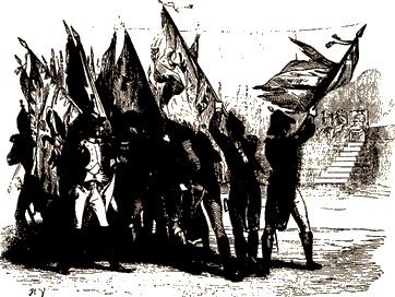 Ровно в час пополудни Бонапарт выехал из Люксембурга в сопровождении поезда, главное великолепие которого составлял парад войск. Полки шли с музыкой впереди; генералы и штаб были верхом; народ толпился со всех сторон. Глаза каждого искали первого консула, который ехал в карете, запряженной шестью серыми лошадьми, подаренными ему австрийским императором после заключения кампо-формийского трактата. Камбасерес и Лебрен помещались в той же карете, спереди, и казались только камергерами своего товарища. Поезд тянулся по большей части улиц Парижа, и народ везде встречал Бонапарта с восторгом.