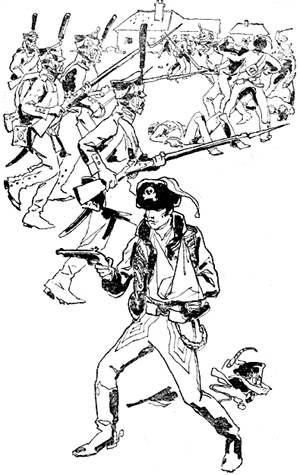 Офицеры бросились опрометью вон из избы. Хозяйка кинулась вслед за ними, заперла ключом дверь и спряталась в погреб. Все это сделалось в течение какой-нибудь полуминуты и прежде, чем Зарядьев успел выдраться из-под стола, который во время суматохи опрокинулся на его сторону. Меж тем французы зажгли один крестьянский дом, рассыпались по улице, и пальба беспрестанно усиливалась. Зарядьев старался выломать дверь, как полоумный бросался из угла в угол, каждый выстрел попадал ему прямо в сердце. «Боже мой! Боже мой!.. — кричал он, — если б я мог!..» Он схватил стул, вышиб раму и кинулся в окно. Но бедный капитан забыл в суетах о своем майорском чреве: высунувшись до полог-вины в окно, он завяз и, несмотря на все свои усилия, не мог пошевелиться. Пули с визгом летали по улице, свистели над его головою, но ему было не до них; при свете пожара он видел, как неприятельские стрелки, бегали взад и вперед, стреляли по домам, кололи штыками встречающихся им русских солдат, а рота не строилась... «К ружью! выходи! — кричал во все горло Зарядьев, стараясь высунуться как можно более. — Я вас, негодные!.. Завтра же фельдфебеля в солдаты — я дам ему знать!.. Ну, слава богу!.. Залп! другой! Живей, ребята!.. живей! вот так! Стрелки, вперед!.. Катай их, разбойников!»Но не один Зарядьев кричал как сумасшедший: французский офицер в гусарском мундире, с подвязанной рукой, бегал по улице и командовал во весь голос, как на ученье: «Feu mes enfants — feu! visez bien!.. aux officiers! En avant!..» (Огонь, ребята, огонь! цельтесь хорошенько!.. по офицерам! Вперед! (фр.)) Несколько минут продолжалась эта ужасная суматоха; наконец большая часть роты выстроилась на сборном месте; Двинской и другое офицеры ударили с нею на французов, и началась упорная перестрелка. Неприятели стали подаваться назад, вдруг сделали залп и бросились в кусты. Двинской скомандовал вперед; но из-за кустов посыпались пули, и он должен был снова приостановиться. Перестрелка стала утихать, наши стрелки побежали в кусты; мимоходом захватили человек пять отсталых неприятелей и, добежав до морского берега, увидели две лодки, которые шли назад, в Данциг, и были уже вне наших выстрелов. Офицеры поспешили возвратиться скорей в деревню, помочь обывателям тушить пожар. — Ах, черт возьми! — сказал Сборской, подходя к деревне, — какой нечаянный визит, и, верно, это проказит Шамбюр. Однако ж, господа! куда девался наш капитан? — Я слышал его голос, — отвечал Двинской, — а самого не видал. — Уж не убит ли он?.. Но что это за крик? Офицеры и человек десять солдат побежали на голос, и что ж представилось их взорам? Зарядьев, в описанном уже нами положении, бледный как смерть, кричал отчаянным голосом: «Помогите, помогите!.. горю!» Офицеры кинулись в избу, выломили дверь, и густой дым столбом повалил им навстречу. Позади несчастного капитана пылал опрокинутый стол; во время тревоги никто не заметил, что свеча, которую сшибло пулею со стола, не погасла; от нее загорелась скатерть; а как тушить было некому, то вскоре весь стол запылал. Тотчас залили огонь; но гораздо труднее было протащить назад в избу Зарядьева, который напугался до того, что продолжал реветь в истошный голос даже и тогда, когда огонь был потушен. Кой-как толстый капитан выдрался из окна; минуты две смотрел он на всех молча, хватал себя за ноги и ощупывал подошвы, которые почти совсем прогорели. — Тьфу, бат
