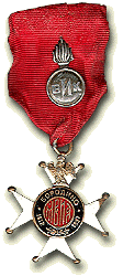 III-я степень - для рядовых. Медальон из бронзы. Лента - черная с желтым кантом по обеим сторонам.