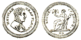Популярность гр. Платова была велика и в Германии. В Нюрнберге были отчеканены «счетные» пфенниги с изображениями этого нашего героя.