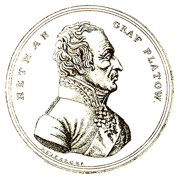 Один из таких медальонов *), изображение которого помещаем далее, имеет внизу надпись: HEUBERGER, что указывает на гравировку штемпеля этой медали известным венским медальером Геубергером. Время изготовления можно считать 1814—1815 годы, когда Платов находился в Вене.