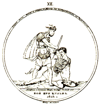 После бывшего на Дрезден покушения, Наполеон отрядил Генерала своего Вандама с осмьюдесятью орудиями и сорока тысячами пехоты и конницы ворваться в Богемию и овладеть Прагою. Вандам успел уже придвигнуться к Теплицам и при урочище Кульме встретился с Российскою гвардиею, состоявшею в осьми тысячах человек под начальством Генерал-Лейтенанта Графа Остермана. Отряд сей, малый числом людей, но великий твердостью духа, не устрашился противустать превосходнейшему в пять крат против себя неприятелю, дополняя недостаток сил своих избытком храбрости. Августа 16 и 17 числ происходил между ими жестокий бой, о котором можно сказать стихами Тасса: