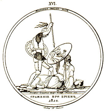 По вступлении союзных войск в пределы Франции, Наполеон с собранными им вновь войсками является под Бриеною. Город, в котором он воспитывался и провел первые дни своей юности, щедростию Короля Французского помещенный в бывшее там училище. Здесь по долгом и кровопролитном сражении с Российскими и Прусскими войсками, наконец, принужден он был отступить, и дабы бегство свое на время прикрыть, велел город сей, гнездо и колыбель молодости своей, предать огню и разрушению.