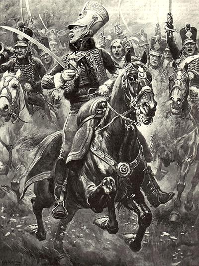Полковник барон Ж. Б. Марбо во главе 7-го гусарского полка в сражении при Ватерлоо