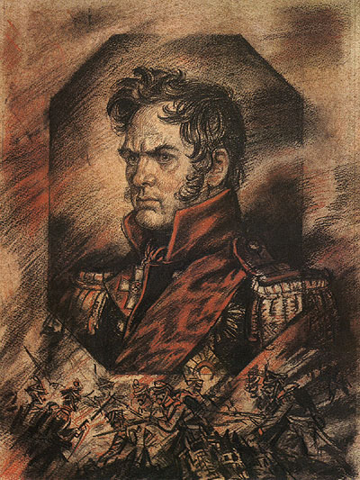 Художник Ю.Иванов. 1990 г.Блистательный ум Ермолова, широта его кругозора, безукоризненная честность - все это привлекало к нему лучших людей того времени. Великолепная характеристика Ермолова принадлежит Александру Грибоедову: «Патриот, высокая душа, замыслы и способности точно государственные, истинно русская, мудрая голова».