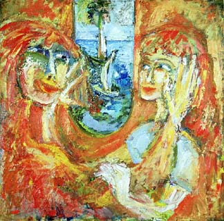 Архангельская Ксения Юрьевна. 1938 г.р. Москва «Бабушка Саша и Арно», 1999 Х., м. 50х35 |