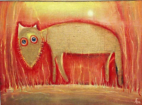 ЛЮБОВЬ ЛУЧШЕ ТВОРЧЕСТВА, ИБО ОНА ВЫСШЕЕ ТВОРЧЕСТВО. Многоголосье нашего всемирного блеянья лишь подчеркивает его одинокость. И только любовь время от времени преодолевает эту неизъяснимость. Фазиль Искандер. Мы представляем сегодня выставку работ Алексея Алексеевича Белякова, хотя странно его звать вот этак. Хочется - Алешей, ибо работы его просят этого. Работы инфантильные, женские, даже скорее девичьи, и это смущает. Ибо что может быть банальнее девичьих работ, да еще и реализованных в образах из мультиков? Но что же говорит внутри: ''Постой брат, не отвергай… Люди ведь не играются, люди ведь живут вот этак''. Их пока двое – Алеша и Оля. Да-да, сограждане, у Алеши есть Оля, и пока Алеша рисует ОЛЮ, ОЛЮ, и ОЛЮ, и себя с ОЛЕЙ, она играет на флейте в своей «Земляничной поляне». Может, Оля и проще Алеши, а только ему все равно повезло. У Макара Девушкина такая маточка была только в мечтах неосязаемых. А вот у Алеши воплотилось, и без этой плоти спасительной, без покрова этого женского теплого, может, и картин-то не было. Ибо они из страдания растут, только не очень большого, не смертельного. А ну его к лешему, это смертельное… Жить - оно лучше и приятней. А что для творчества полезней – оно в глазах у мужских ЖУЖ осталось. Без этих глаз картинки показывать не стоило. Так что по содержанию – это счастье и покров. А по форме… Все потешное и площадное от тумаков, оплеух и гогота приходит к философии – от Тома и Джерри к Винни Пуху и ослику Иа. От Петрушки через Буратино к Ежику в тумане. Как-то незаметно выросло поколение, смотревшее «Сказку сказок» еще маленькими человечками. И вот они транслируют эти нежные сигналы… И это, граждане, факт, как говорил Михаил Зощенко.